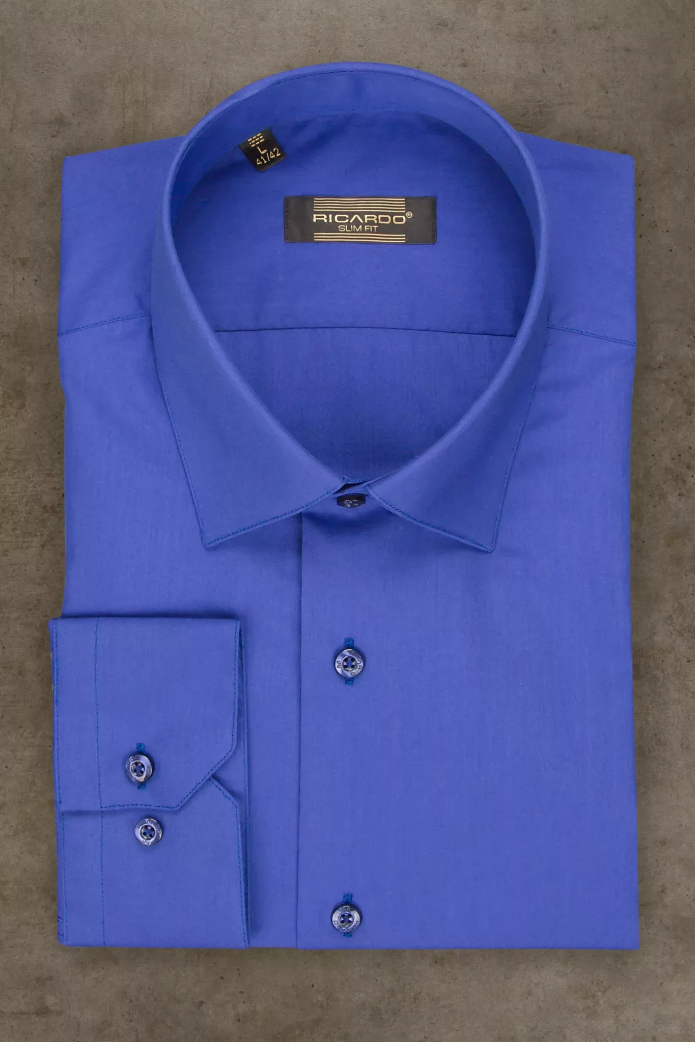 Рубашка синего цвета приталенная, стрейчевая