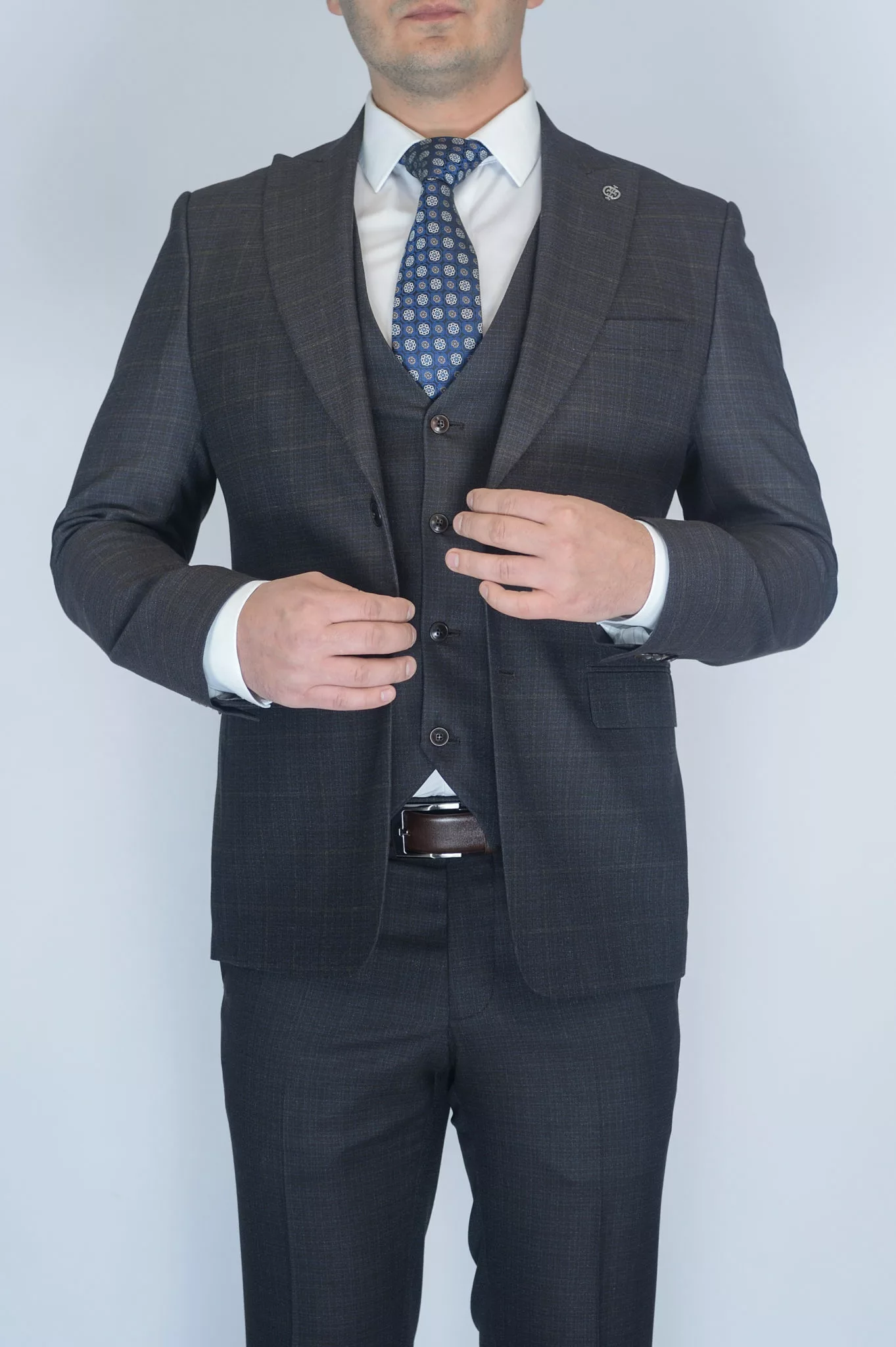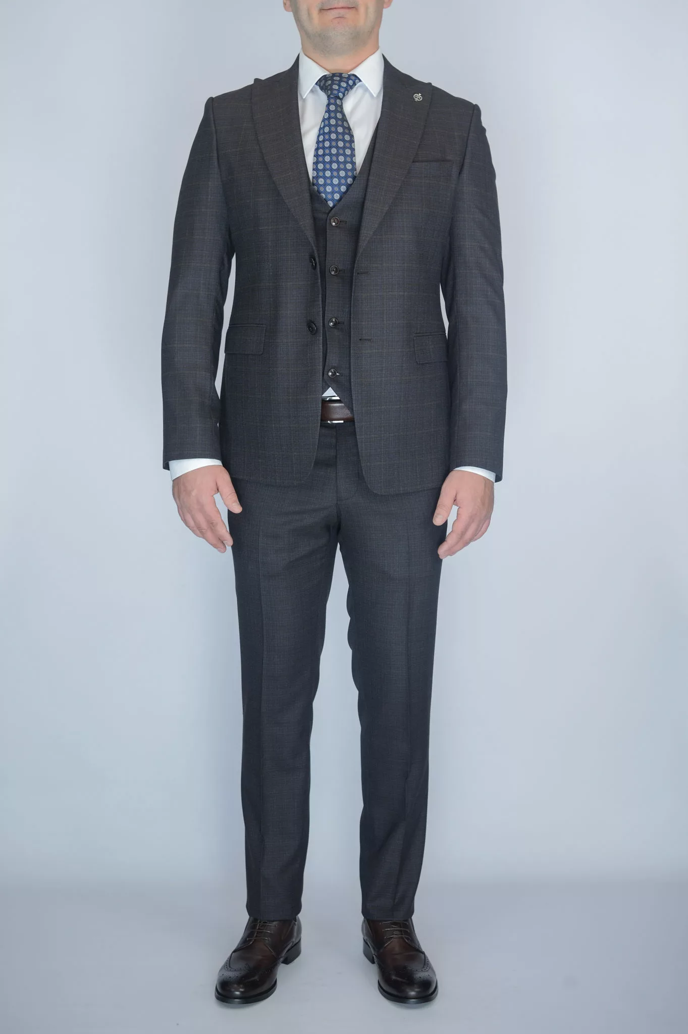 Шоколадный костюм-тройка в клетку