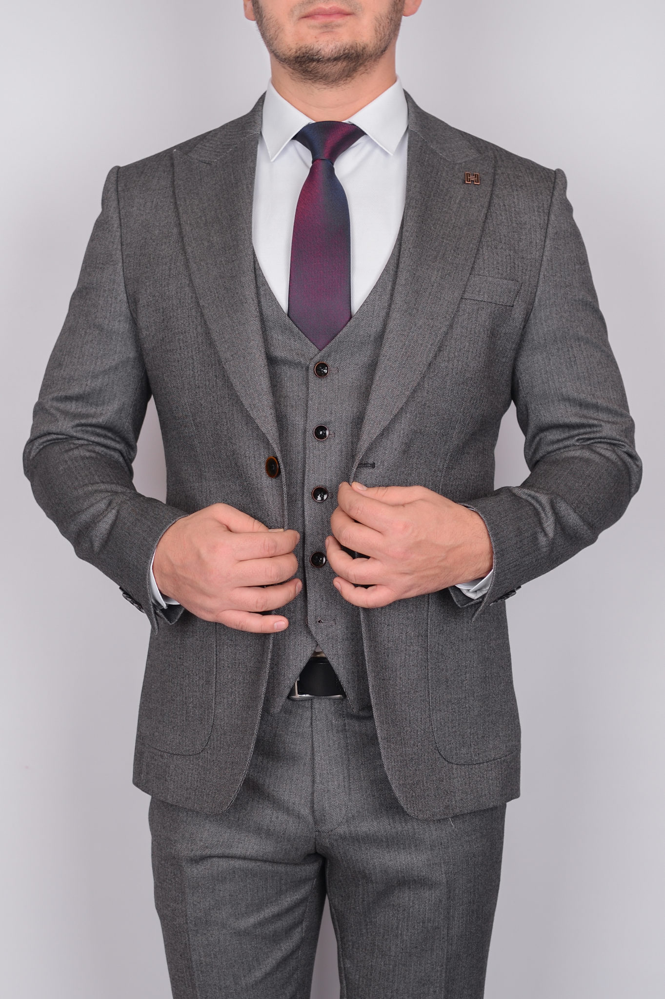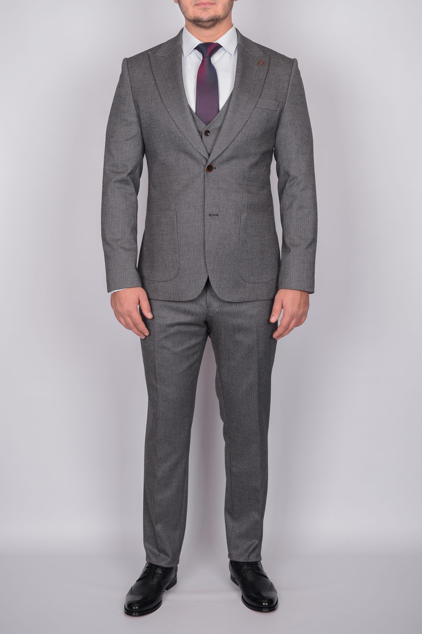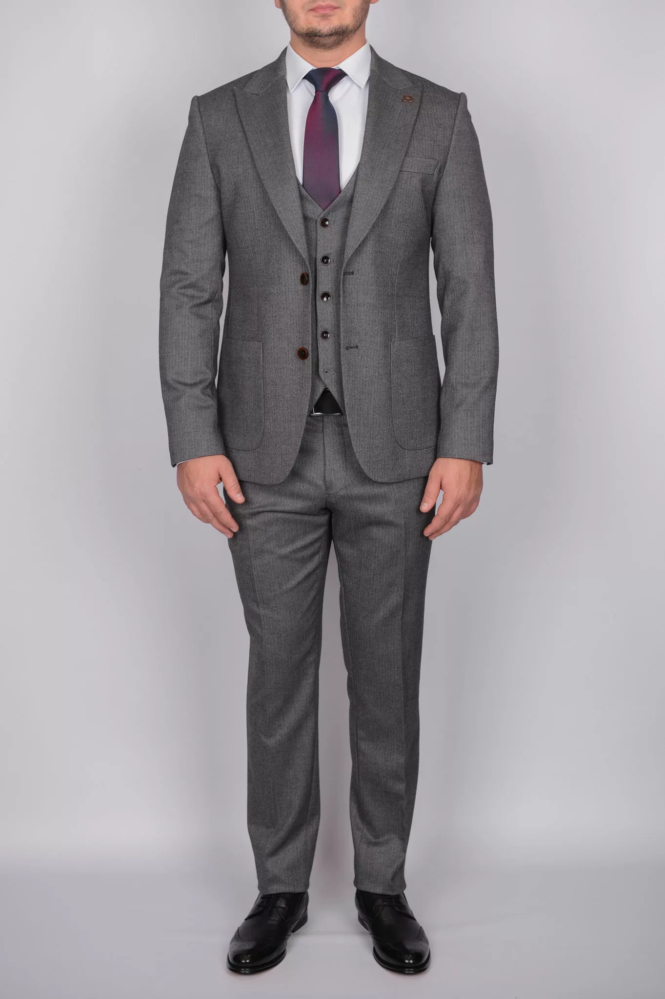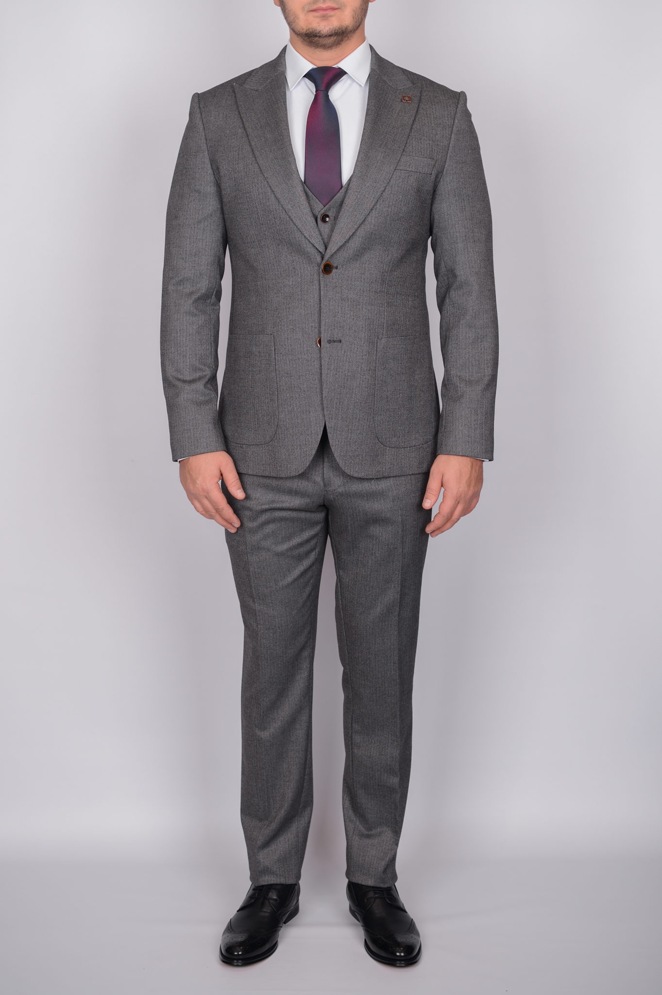 Костюм имеет замечательную посадку, отлично садится практически на любой тип фигуры. Данная модель отшита в красивом пепельно-сером  цвете, отлично подойдет для офиса и повседневной носки.  Жилет костюма по спине также тканевый, что позволяет использовать его отдельно только с брюками.