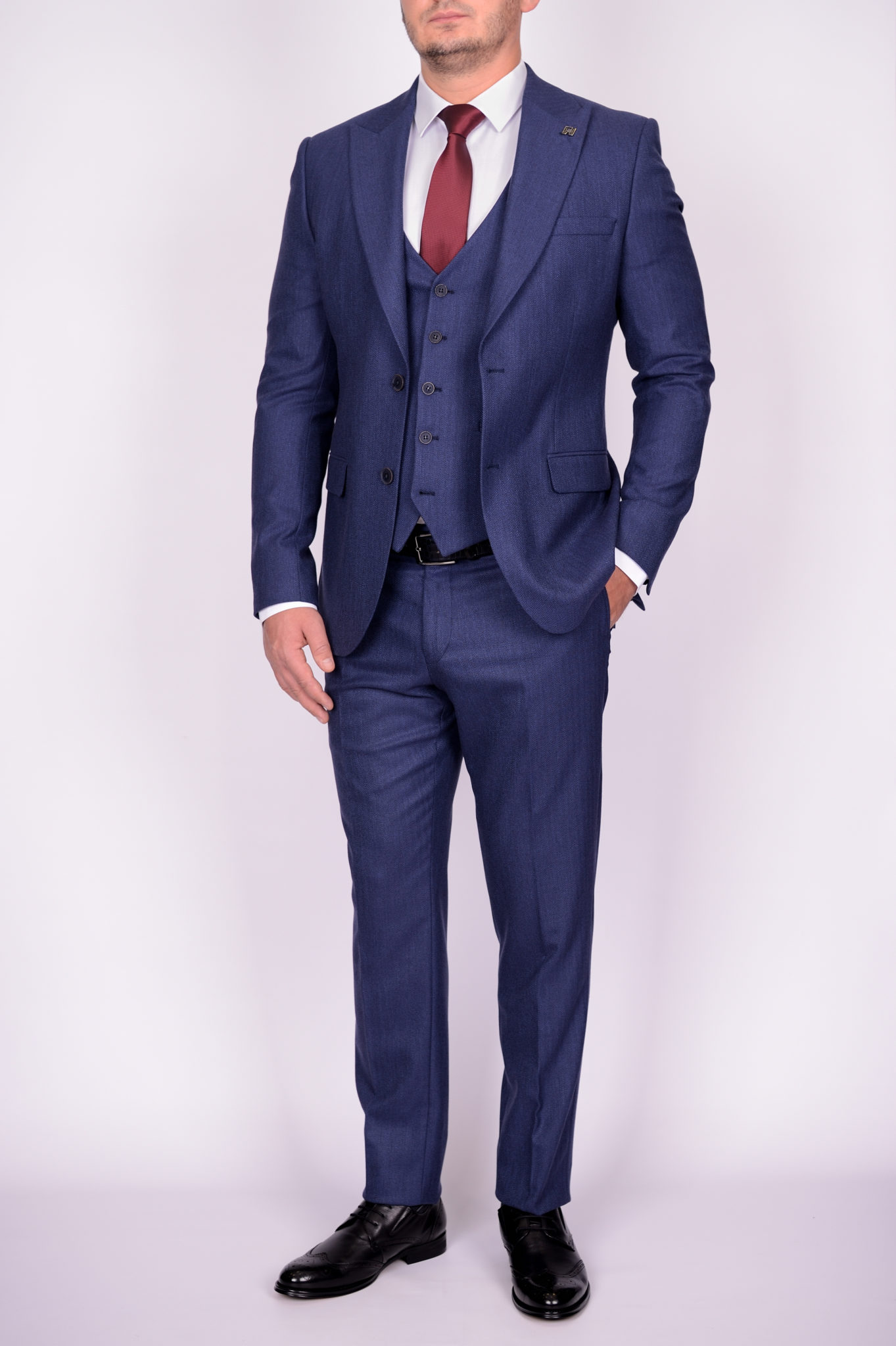 Костюм имеет замечательную посадку, отлично садится практически на любой тип фигуры. Данная модель отшита в красивом насыщенно-синем цвете, отлично подойдет для офиса и повседневной носки. Жилет костюма по спине также тканевый, что позволяет использовать его отдельно только с брюками.