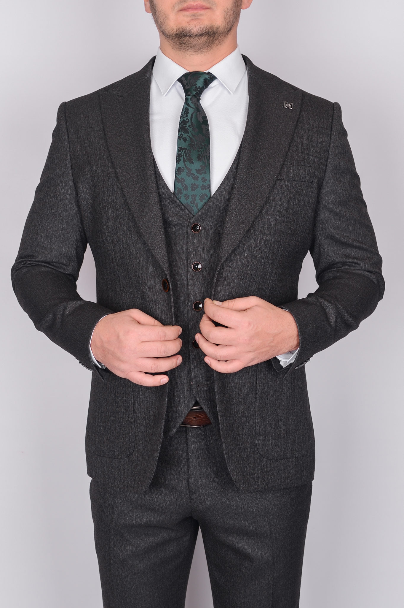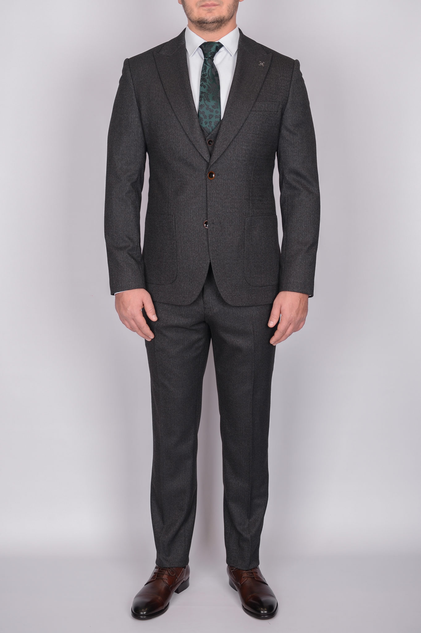 Твидовый костюм-тройка темно-серого цвета