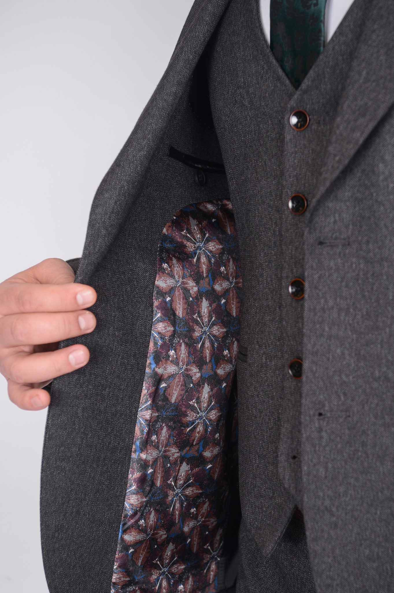 Костюм-тройка изумрудного цвета в клетку
